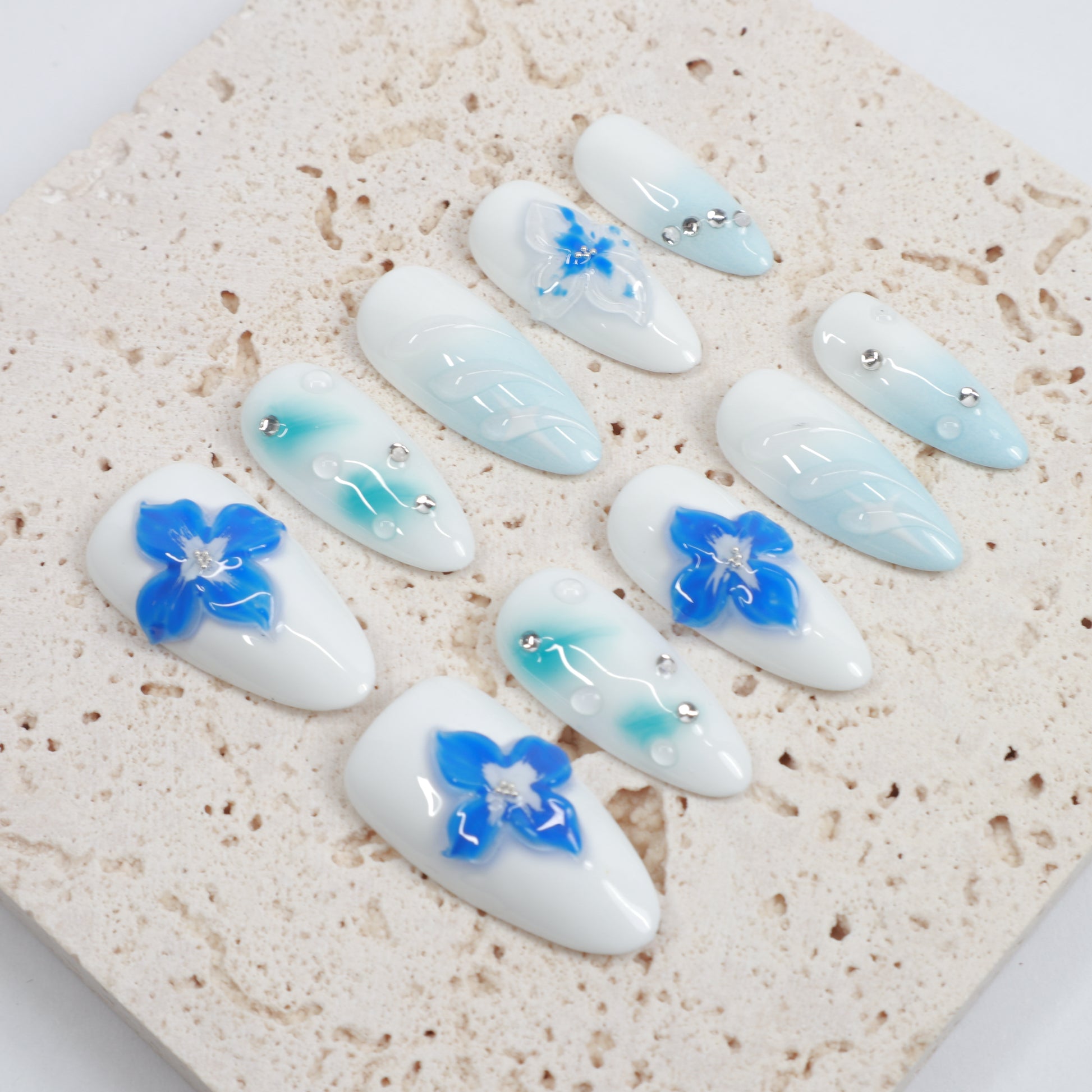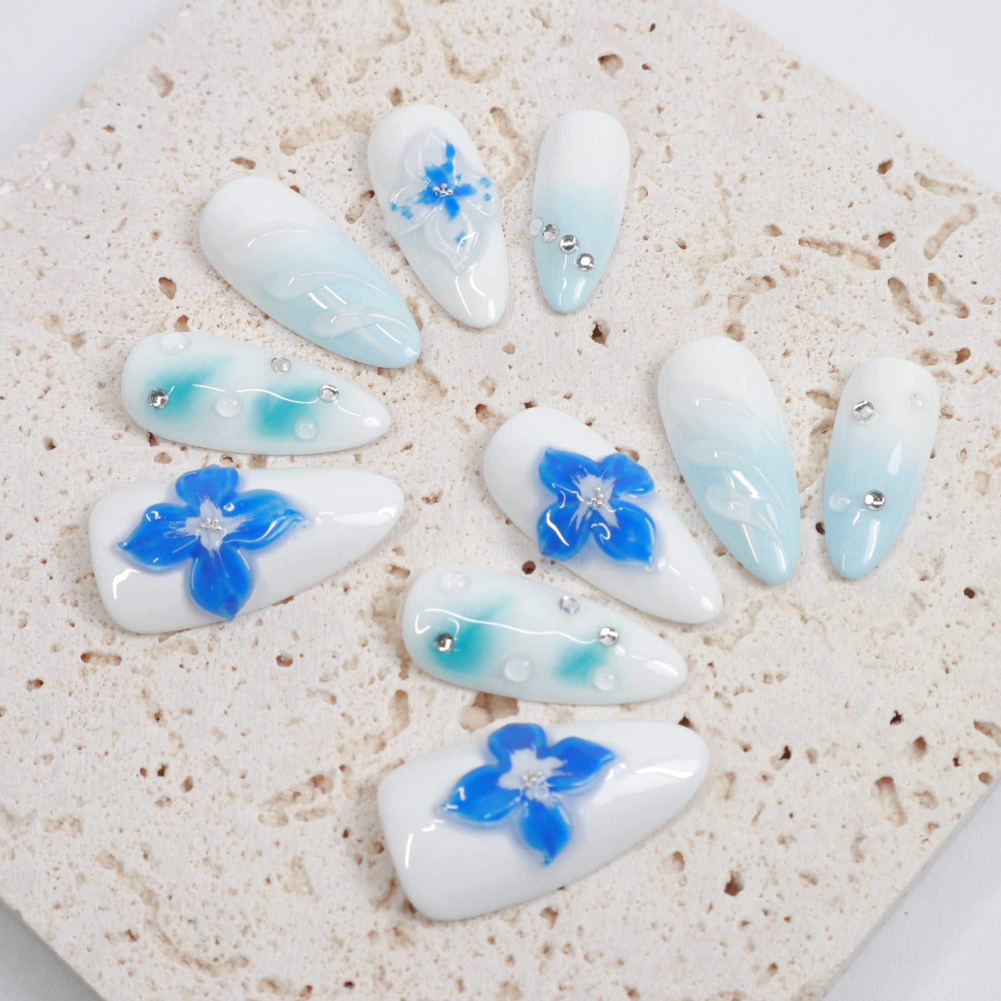 All press-on nails are meticulously hand-painted. Minor variations in detail may occur between sets, reflecting the artisan process. These are not defects but proof of authentic craftsmanship.