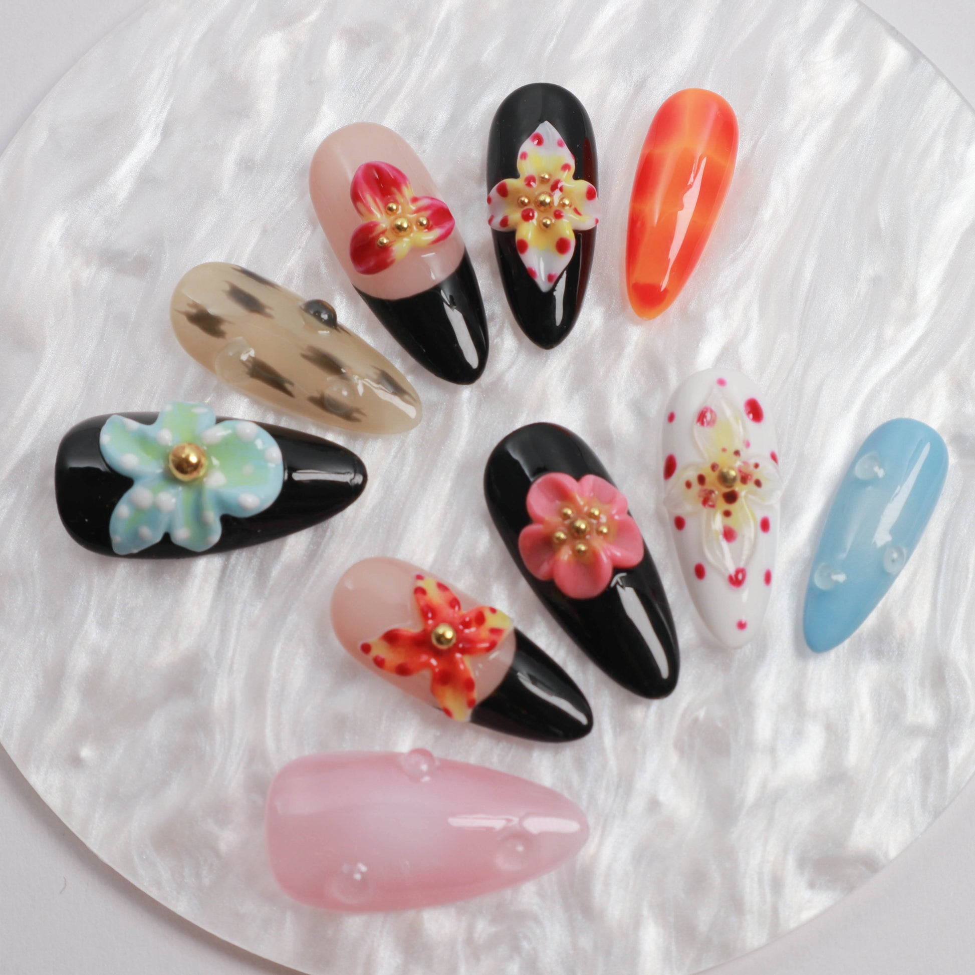 All press-on nails are meticulously hand-painted. Minor variations in detail may occur between sets, reflecting the artisan process. These are not defects but proof of authentic craftsmanship.