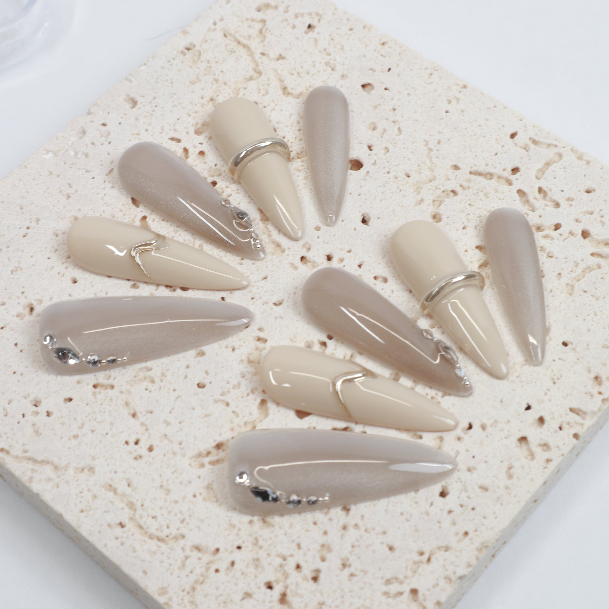 Nail lengths are measured based on the middle finger to ensure proportional aesthetics.