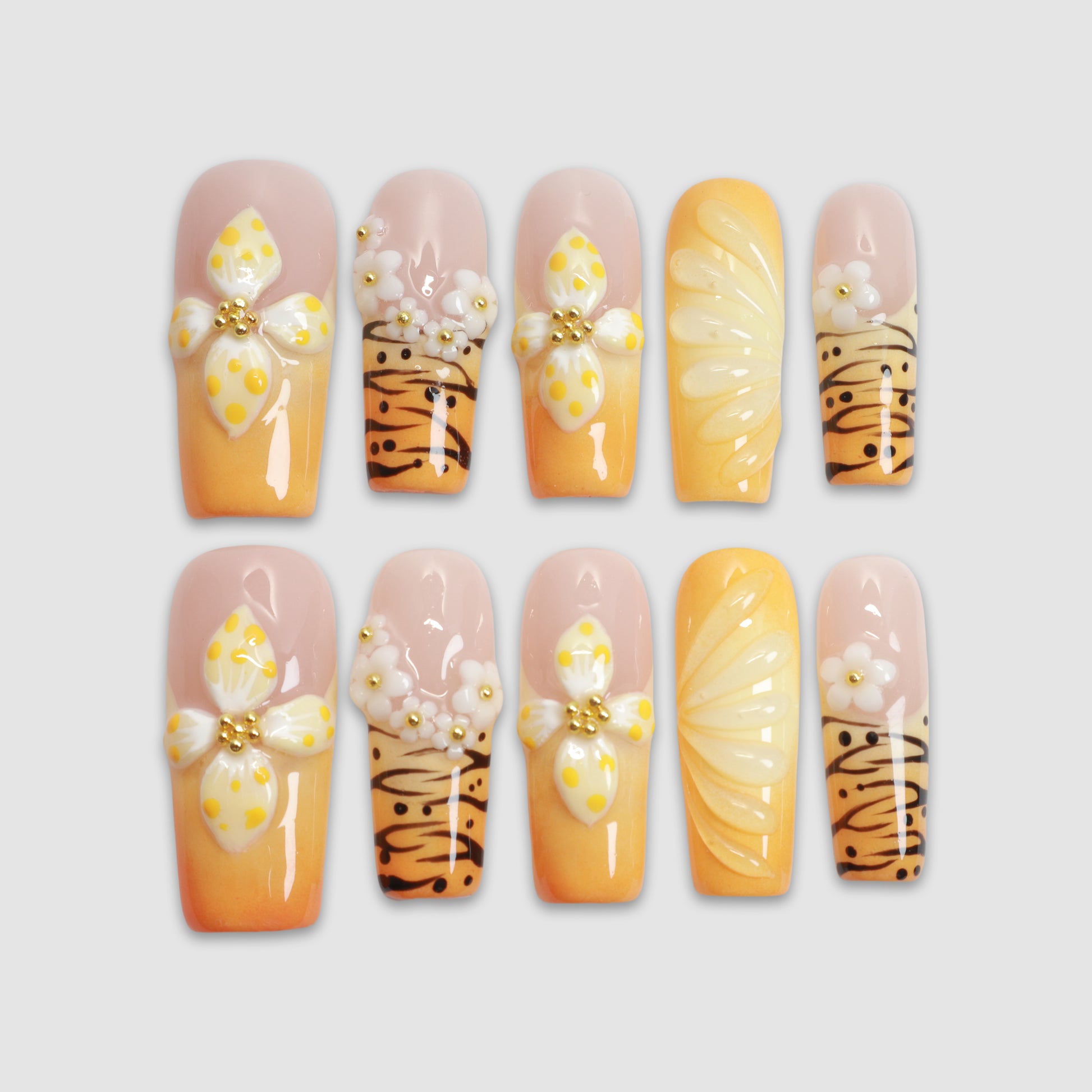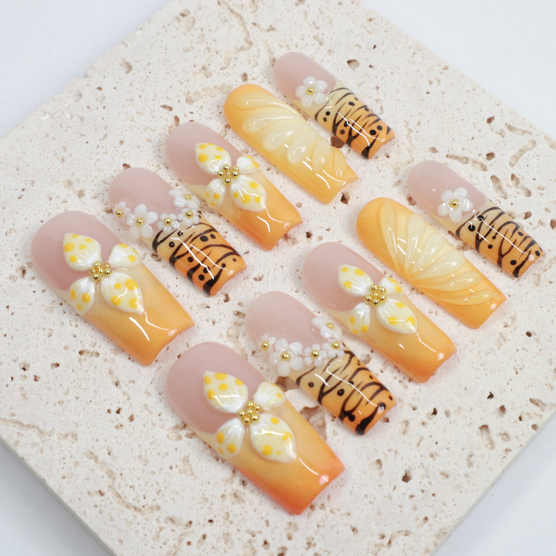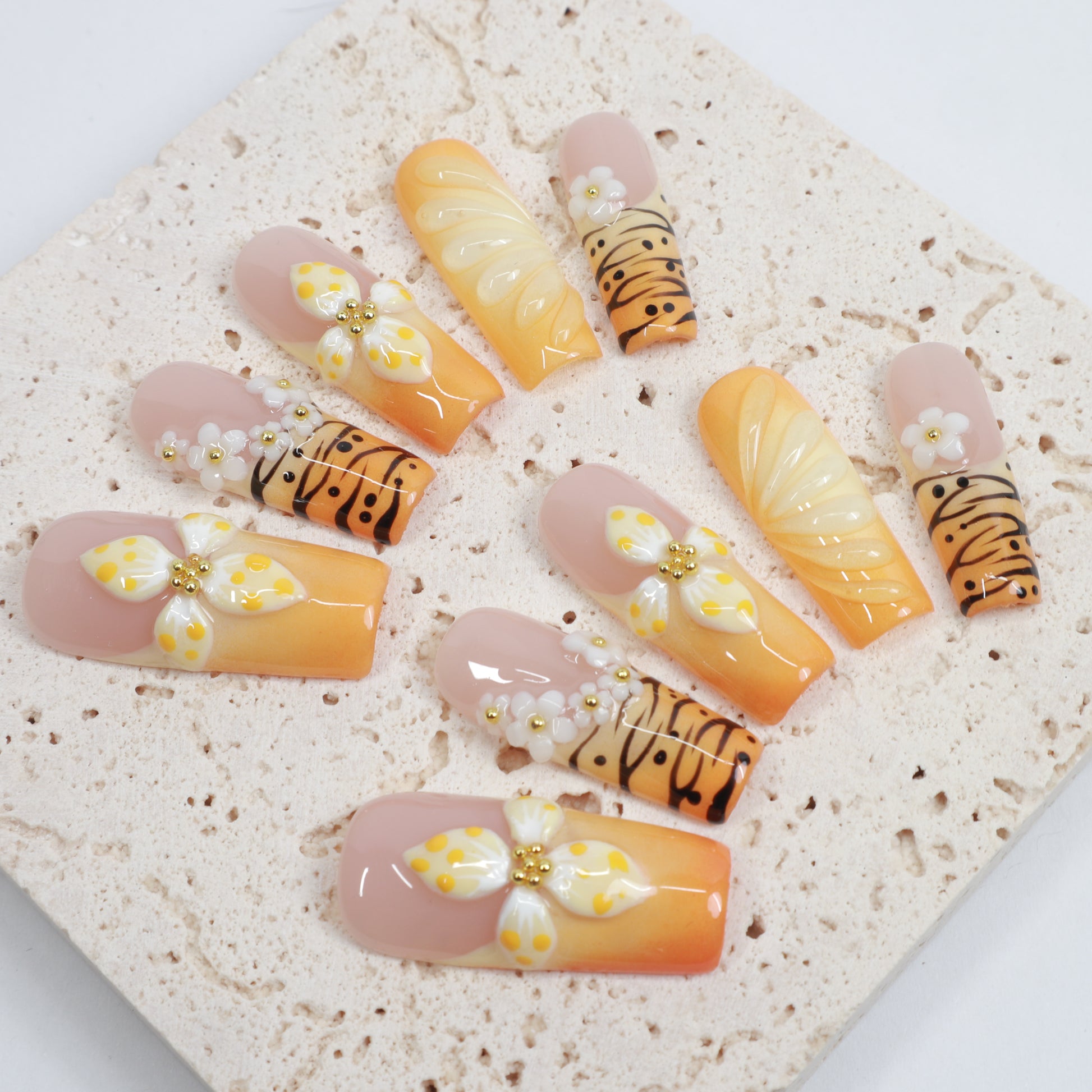 All press-on nails are meticulously hand-painted. Minor variations in detail may occur between sets, reflecting the artisan process. These are not defects but proof of authentic craftsmanship.