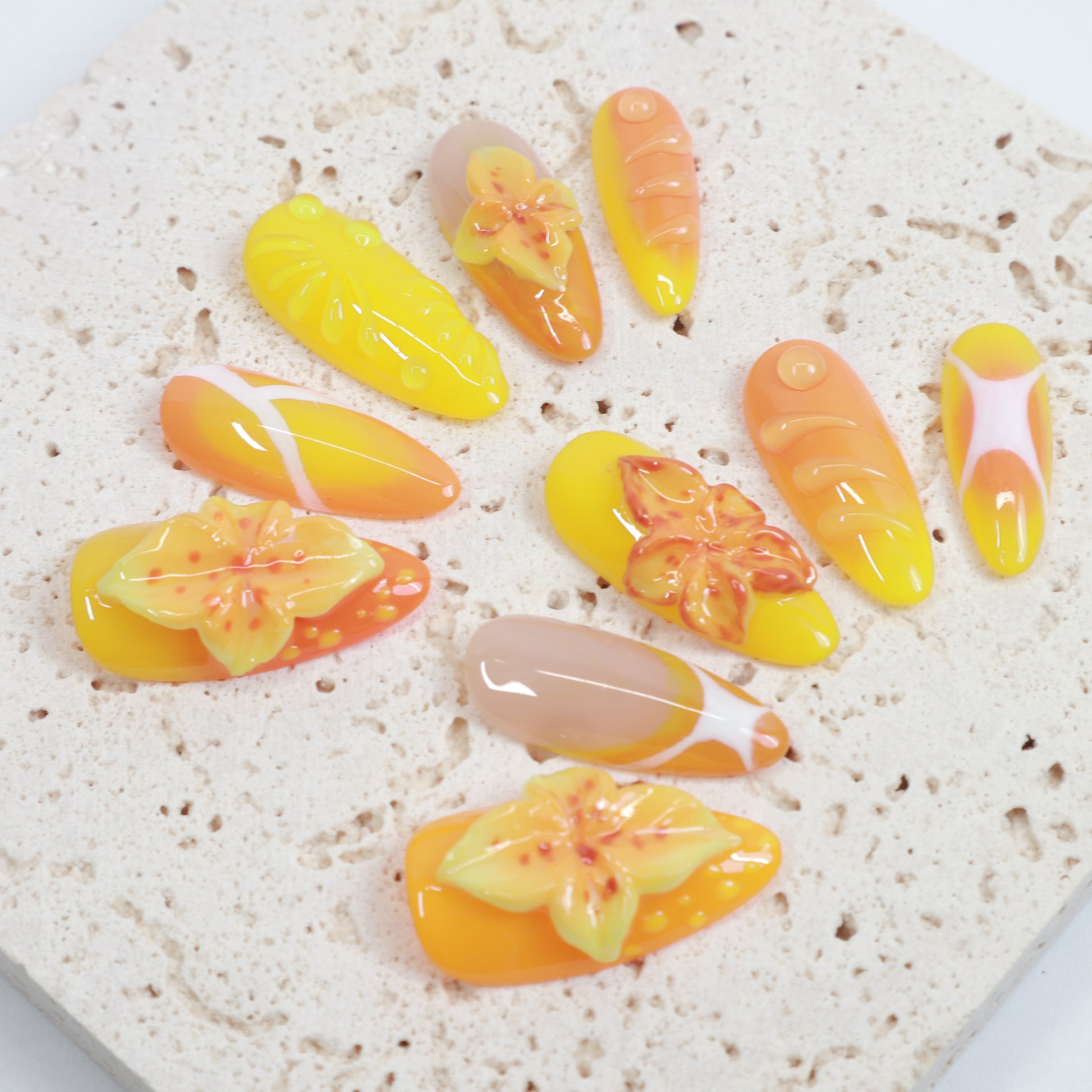 All press-on nails are meticulously hand-painted. Minor variations in detail may occur between sets, reflecting the artisan process. These are not defects but proof of authentic craftsmanship.